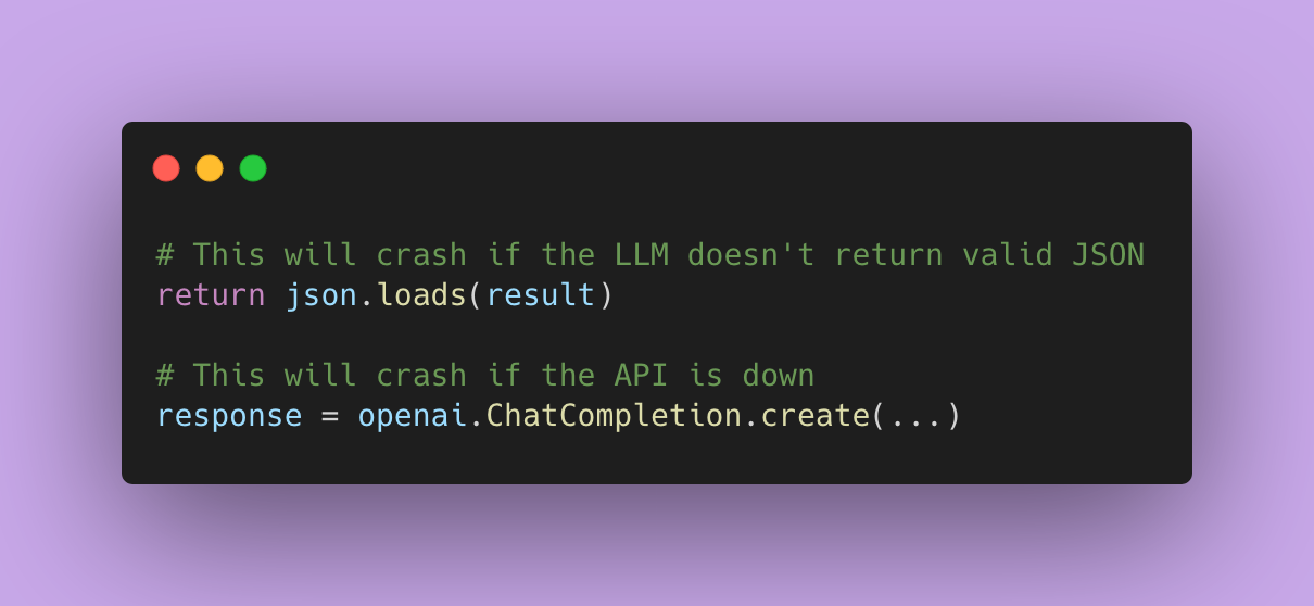 What happens when OpenAI’s API is down? What if you hit rate limits? What if the response isn’t valid JSON? What if the model returns null for a required field?