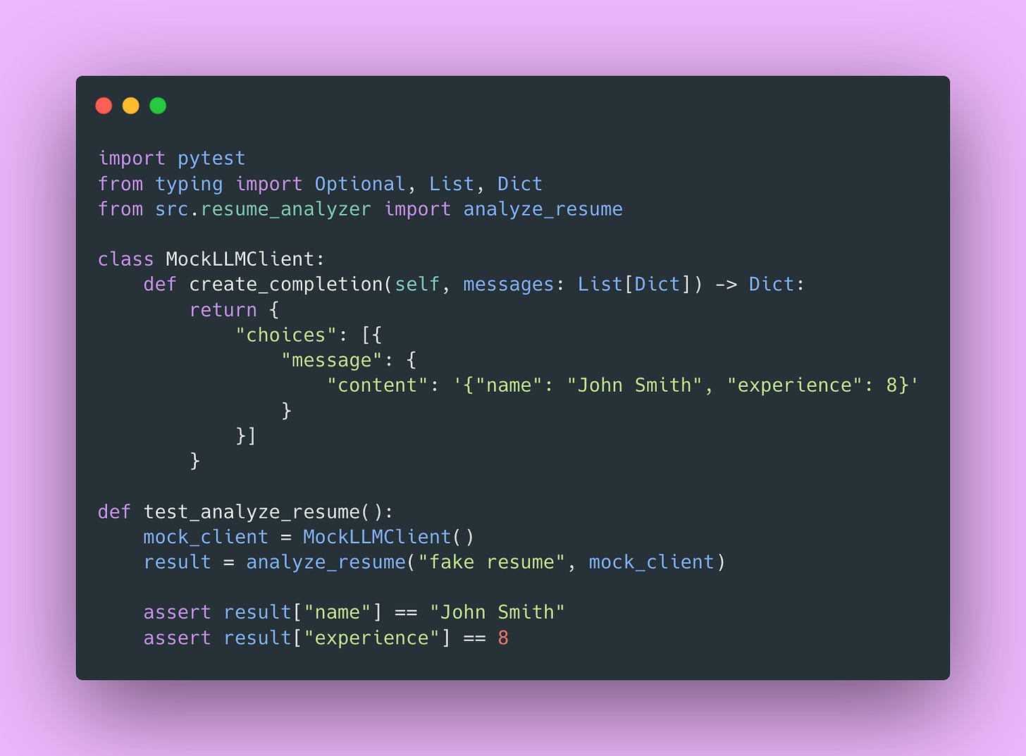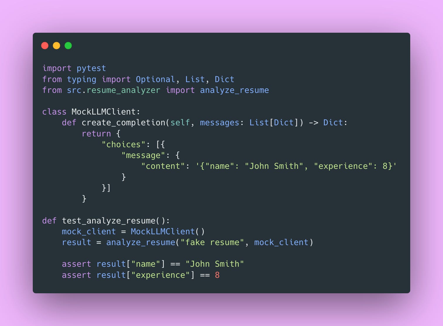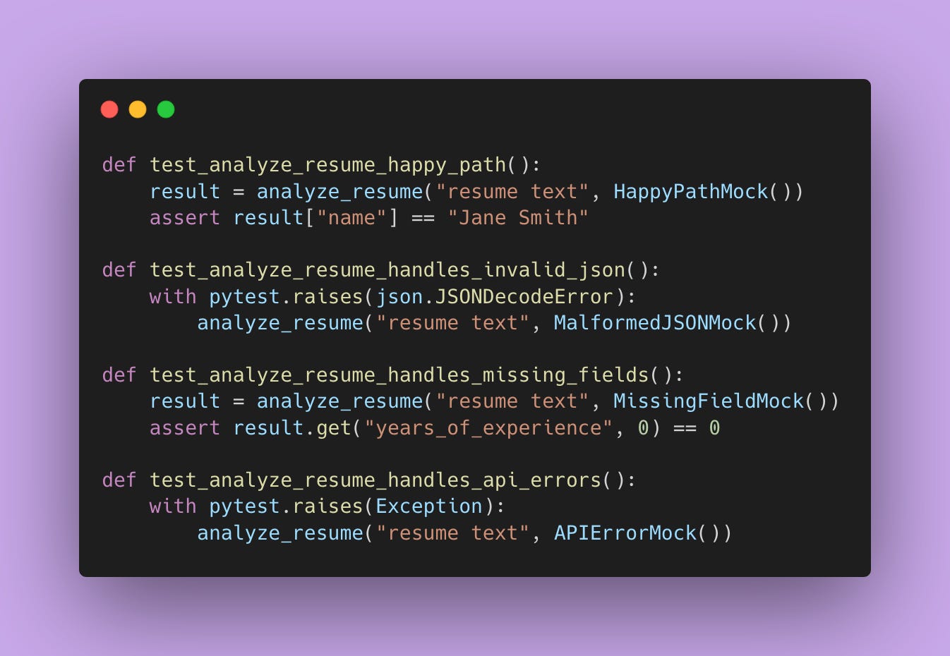 A few weeks into my LLM project, I needed to write tests for a resume parsing function I was building. Not the “run it manually and hope all is well” kind of testing - actual automated tests that could run in CI/CD.