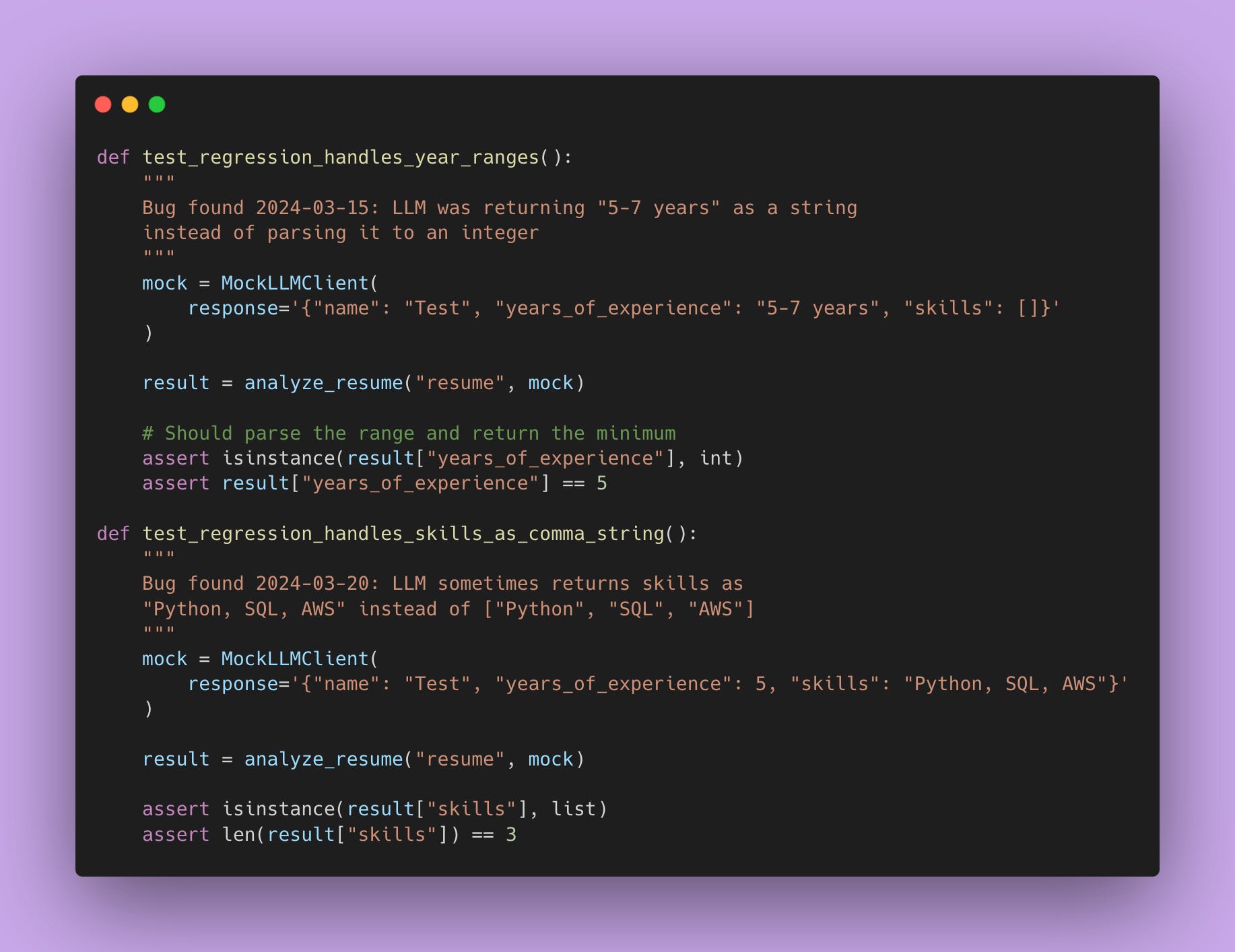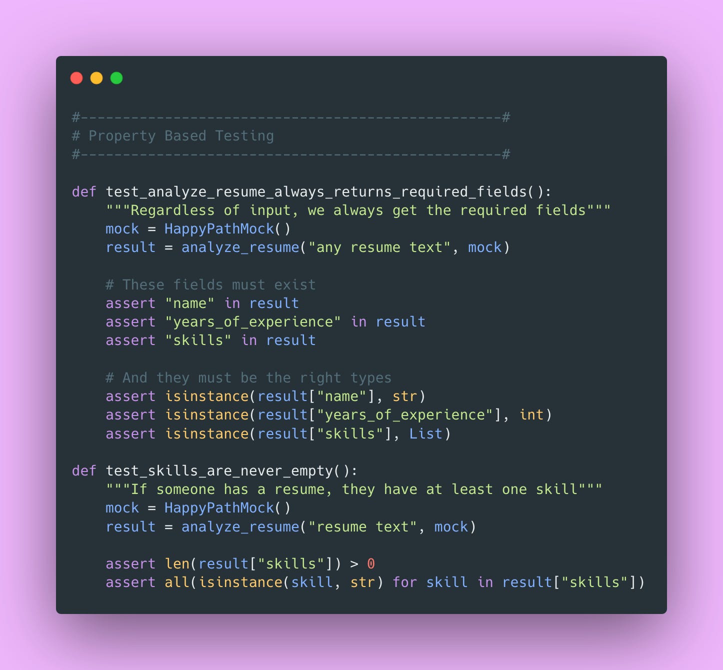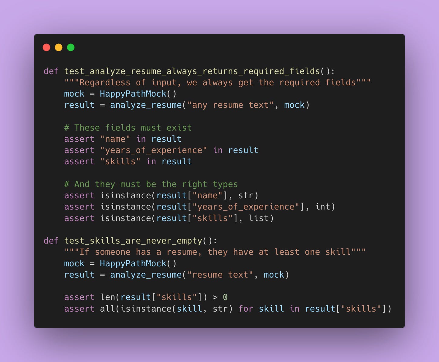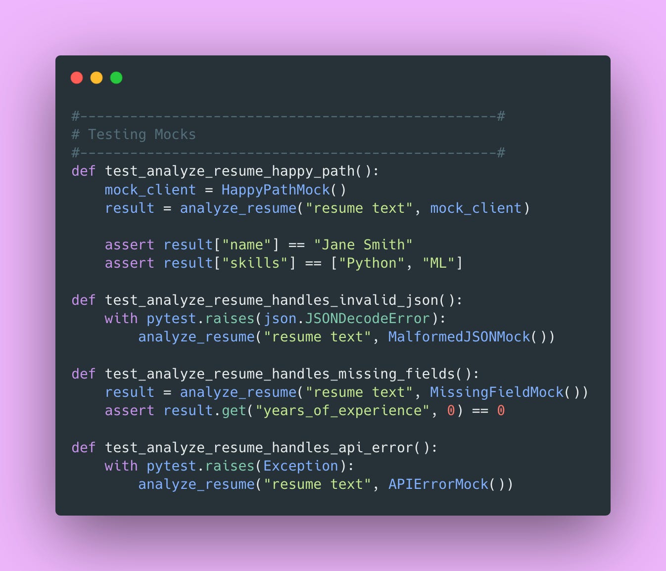 A few weeks into my LLM project, I needed to write tests for a resume parsing function I was building. Not the “run it manually and hope all is well” kind of testing - actual automated tests that could run in CI/CD.